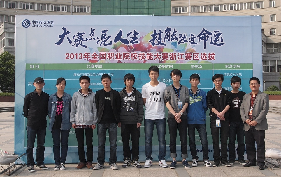 最近,2013年移动互联网应用软件开发(APPS)全国职业技能大赛浙江省选拔赛圆满结束,在各级领导、老师的关心支持下,我校电信学院软件技术专业首次选派选手参加全国职业技能大赛,并有所斩获,韦存存、徐畅老师指导的徐伟、张毅、朱书架三位同学荣获一等奖,他们将有幸参加6月底举行的全国职业技能大赛总决赛,这也是我校今年唯一进入全国决赛的队伍。