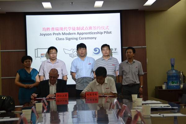 2016年7月1日,我校与均胜集团校企合作的均胜普瑞现代学徒制试点班签约仪式在中和楼举行,均胜普瑞总经理Buckhard Fries先生、我校副校长徐永春、均胜集团人力资源部经理谢炜等领导出席仪式,相关部门领导也参加了本次仪式。
