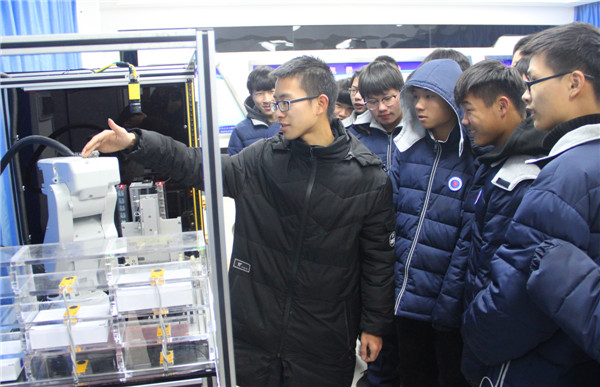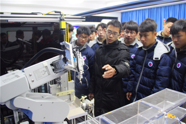 近日,电气自动化技术专业建设中的机器人实训室迎来一批特殊的客人--第一届五年一贯制机器人专业的学生。机器人是先进制造技术和自动化装备的典型代表,是人造机器的“终极”形式。它涉及到机械、电子、自动控制、计算机、人工智能、传感器、通讯与网络等多个学科和领域,是多种高新技术发展成果的综合集成,因此它的发展与众多学科发展密切相关。电气自动化技术专业将机器人的应用作为主要发展方向,在办学过程中获得了大量用人单位的首肯,班级规模效应逐渐显现。