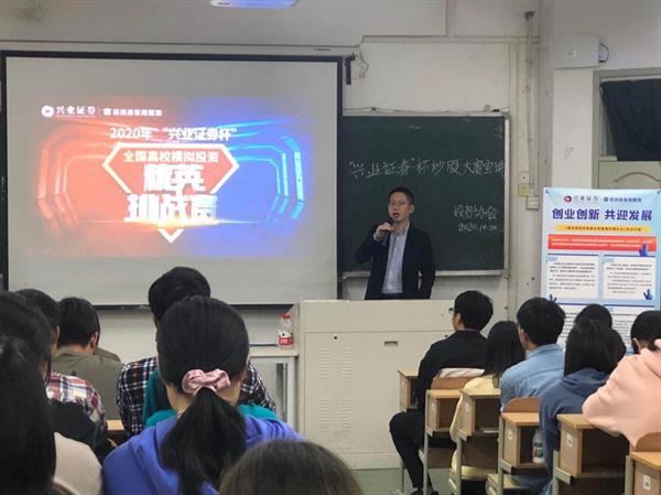 近日,由兴业证券承办、投资协会协办的“兴业证券杯”模拟炒股大赛圆满落幕。本次大赛在到梦空间和线下进行招募参赛人员,历时一个多月在兴业证券优理宝模拟炒股大赛平台中进行比赛,总计有将近200名同学积极参与此活动。50名学子通过不同的途径和专业性的指导,最终决出获奖名单以及“优秀炒股学子”,并给予相应的鼓励和奖品。兴业证券有限公司陈斌作为公司代表发表感言。他亲切地问候和忠心地感谢此次大赛的所有参赛者和工作人员,同时讲述了金融在中国的发展态势,鼓励同学们坚定不移地朝着金融行业尖端发展,并祝愿同学们在今后的学习生活中取得更多的收获。此次大赛不仅培养了同学们对金融证券的兴趣,充实了同学们在金融方面的理论知识,还丰富了同学们的投资实践经验。同时希望同学们坚持敢于冒险的精神,积极参加此类活动,为自己的大学生活增添活力、点缀色彩。
