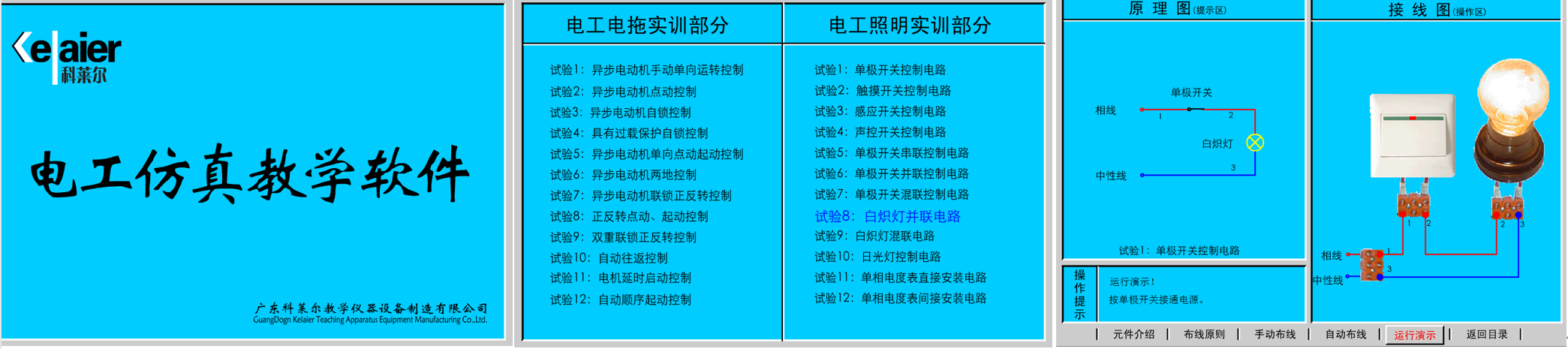 电工仿真教学软件不需要安装,直接点击运行,软件放在超星学习通,学生随时可以下载。通过此软件帮助学生理解家里照明系统的组成,建立起本课程与生活实际的联系,意识到学好本课程的重要性。