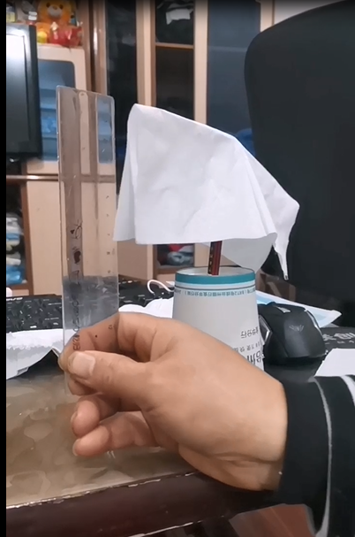 下面展示学生在家做的实验,从学生发我的视频中截图,画面不是很清晰,但绝对是百分百真实。