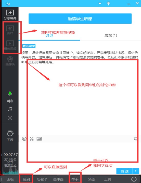 (2)讨论区可以看学生们的互动。