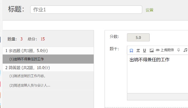 作业用超星学习通平台来发布。客观题与主观题相结合的方式。