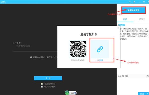 2、进入教室后邀请学生听课,把网址复制到QQ群里