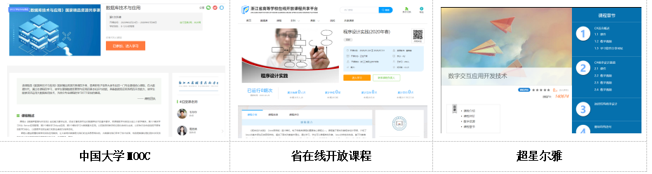 为了更好的达到教学目的,保证课程教学的正常实施。7门专业课程全部采用自建在线课程资源开展教学,并借此机会建设和优化在线专业课程资源,开展信息化教学,丰富专业教学资源库。通过对多个平台的性能及资源比较,结合各门课程在线资源建设实际情况,确定主要采用的授课平台有:中国大学MOOC,省在线开放课程以及超星尔雅。