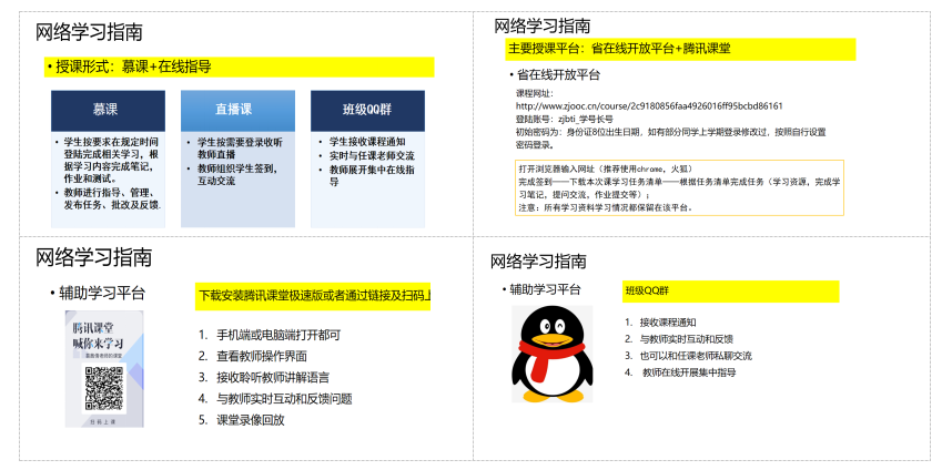 2、为了达到较好的学习指导效果,采用录播课+在线指导(适当采用直播教学)相配合的方式开展教学指导。