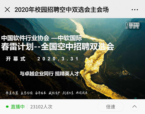 3月31日,2020届软件专业100余名毕业生参加了专业紧密校企合作企业——中软国际教育科技集团与中国软件行业协会,联合举办的首届“全国空中双选会”。这是疫情期间,软件专业响应国家号召,积极践行教育部防疫抗疫精神要求,调整毕业生就业模式,深入挖掘就业渠道和资源。本次双选会完全应用“互联网+就业”新模式,进行网络双选,为广大用人单位和毕业生免费提供“全程无接触”的招聘服务,助力企业复工复产,搭建用人单位和求职者的对接平台,扎实推进软件专业的稳就业工作。