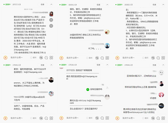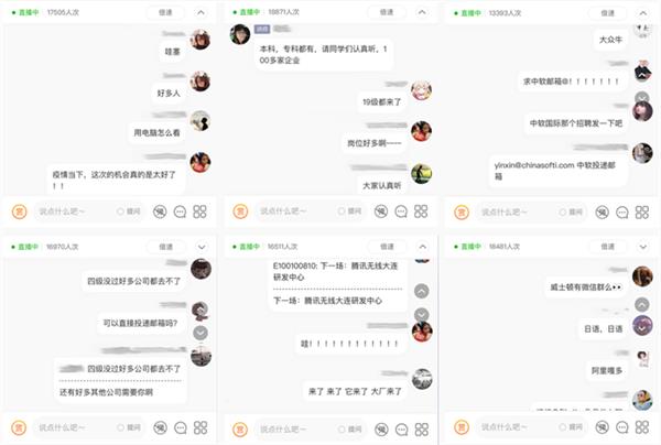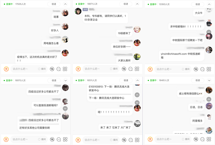 大学生求职者听完公司的介绍后,积极在评论区提出了问题,企业代表们都一一进行了解答,不少企业强调对应聘者没有学历限制,只招合适的,并在评论区发送简历投递方式,邀约求职者投递简历。