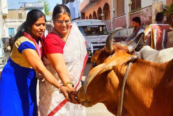 印度教徒视牛为“圣兽”敬之如神,只允许喝牛奶,不能宰杀和吃牛肉。因此,牛可以自由游荡,神圣不可侵犯。在印度的一些城市里、乡村里,老牛、病牛比比皆是。