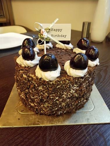 黑森林蛋糕是德国著名甜点,制作原料主要有脆饼面团底托、鲜奶油、樱桃酒等。是受德国法律保护的甜点之一,它融合了樱桃的酸、奶油的甜、樱桃酒的醇香。