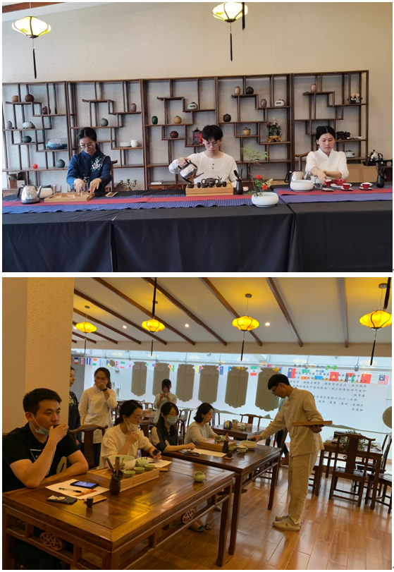 6月3日来自我校旅游管理、休闲服务与管理专业的14名选手身着茶服,齐聚在校茶艺实训室,参加茶艺比拼。本次茶艺大赛旨在弘扬我国传统的茶文化,检验茶艺课程的学习情况及选手茶文化的综合素质,让同学们增进对茶文化的了解,在课余生活中陶冶自身情操,提高个人品性,感受茶文化带来的乐趣。大赛设茶知识测试、茶样品鉴、茶艺展示三个环节。在茶艺展示部分,选手们各展风采,向评委老师和观众展示了一整套泡茶技艺,用心冲泡出一杯杯香茗,茶艺竞技异彩纷呈。经过激烈的角逐,来自休闲专业的胡云涛和叶晓菲同学脱颖而出,荣获本次大赛的一等奖。