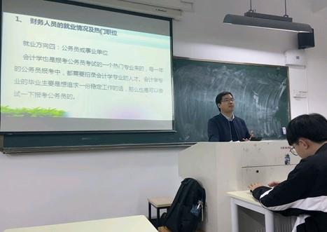 会计事务所以及税务师事务所在任何行业中都有着举足轻重的作用,作为其中一员,宁波中瑞税务师事务所有限公司业务一部张大鹏围绕财务人员的就业情况及热门职位,财会行业的现状、面临的机遇及挑战,财务管理人员所需的素质及核心能力,关于考证之路的一些经验、教训四个方面为同学们进行讲述。同时为同学们提供了多个就业方向不同思路,使同学们对财会就业方面有了了更全面的认识,也在职业发展方向上获得了了新思路、新启发。同学们在讲座过程中及结束后都积极提问、参与讨论。