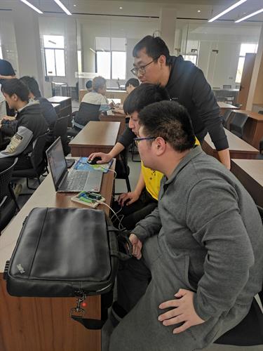 随着现代学徒班的顺利开展,同学们在企业中工作逐步开展,深入了解了智能制造的行业现状,亲身感受企业真实的环境,在学习技能的同时,完善自身的职业规划。自开班后,企业一直在为同学们提供技术、培训和实践等服务做努力,让同学们通过现代学徒制班学习,能够在毕业之后更好更快地融入企业和社会。企业为同学们在工作学习上提供了大力支持,同时也为同学的住宿、餐饮等提供了有力保障,良好的住宿环境以及整洁干净的餐厅,可以让同学们住得舒适,吃得安心,也让学校领导以及同学家长更加放心。近日,我院李方园副院长和指导老师周宇杰来到企业,对目前在实习的44位同学进行专业课程实地教学,专业在保障同学们实习过程中的后勤同时,也及时地给同学们进行理论知识的填充。下图中为李方园副院长和周宇杰老师正在企业上课并指导学生完成实验。
