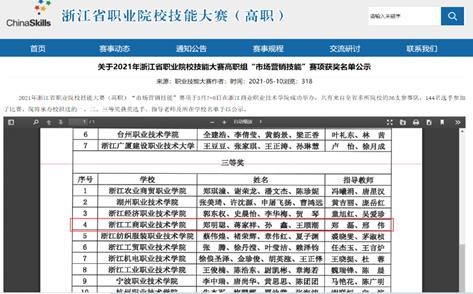 2021年浙江省高等职业院校技能大赛(高职)“市场营销技能”赛项于5月7日在浙江商业职业技术学院举行,共有来自全省多所院校共有36支队144人参赛。经过激烈的角逐,我院营销专业学生郑明聪、蒋家祥和会计专业孙鑫、王顺潮组成的团队荣获三等奖。