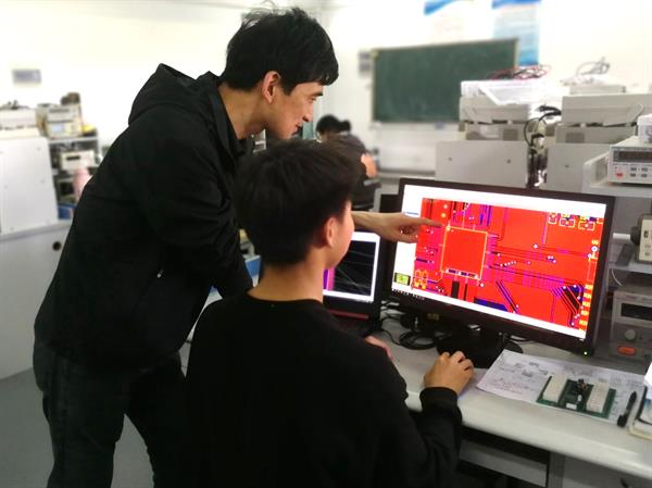 何老师正在指导学生进行 PCB设计训练