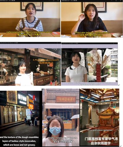 上交完劳动周作业的学生,纷纷表示制作这样一个看似短短几分钟的视频,着实不易。有一组团队表示,首先他们得先组团,选择一个切实可行(方便拍摄)的老字号主题,然后还得上网查找老字号的资料,并写下中英文台词,同时得事先设计好场景;接着还得选择一位颜值高语音地道的队员进行现场拍摄(有些小组选不出出镜人,只好大家轮流上场)。在炎炎夏日下,拍摄实属不易,有时一紧张,还容易忘了说词,得反复重拍;甚至有时候,词说对了,表情没有到位,肢体太过僵硬,还是重拍。拍完视频后,还得剪辑,配上中英文字幕,甚至还配有BGM,最终才能大功告成!还有学生表示,在技术能解决的基础上,视频制作最大的难点是如何将老字号解说词翻译成英语。有时为一个地道的翻译词,他们求助过翻译APP,求助过百度,当然也求助过老师;就像做科研一样,几经考证,才敢放心用词。有学生表示,这种体力和脑力的结合,让他们深深感受到了近年来带给大家快乐的短视频,背后却有着大量的艰辛劳动,敬佩幕后的拍摄者和剪辑者。