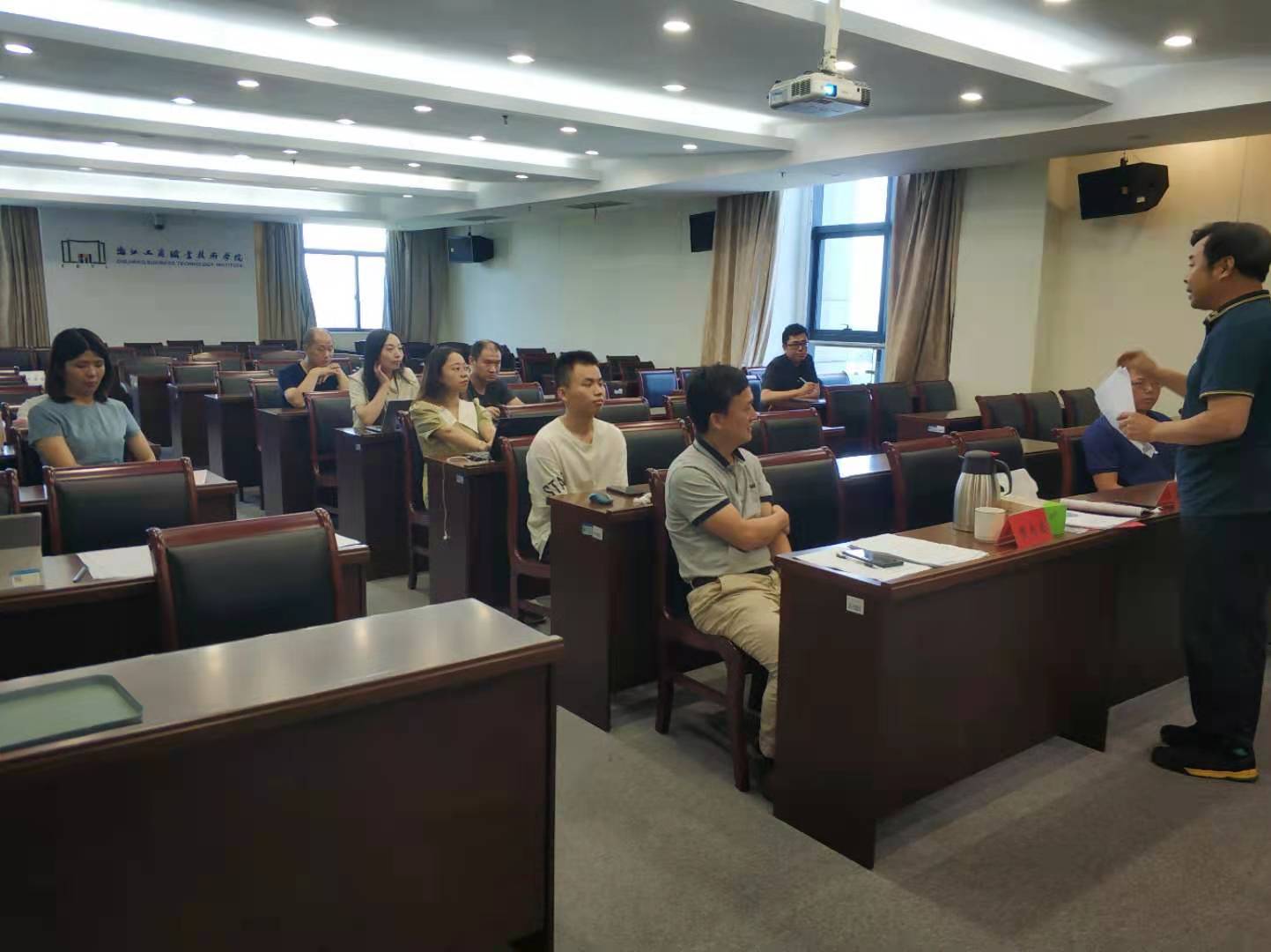 “宁波市首届高校教师双语教学竞赛校级选拔赛——现场决赛”于2021年7月6日上午9:00在浙江工商职业技术学院中和楼1007会议室隆重开赛。全校有5个分院共8位教师参加竞赛,其中国际交流学院理由管理专业有章琪、成奕昕2位年轻教师参加角逐。