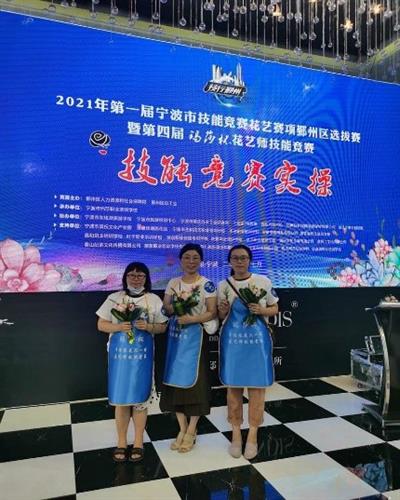 7月18日,国际商务(中外合作)专业章翰老师和濮佳妍老师参加2021年第一届宁波市技能竞赛花艺赛项鄞州区选拔赛暨第四届玛莎杯花艺师技能竞赛,分别获得高级花艺师证书。(供稿人:濮佳妍)
