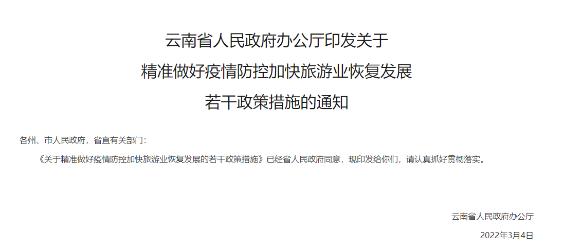 2022年3月8日,云南省人民政府办公厅印发了《关于精准做好疫情防控加快旅游业恢复发展若干政策措施》(下文中简称“若干措施”),明确指出疫情当下鼓励开展研学活动,稳步推进旅游产业转型升级。