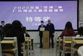 本次比赛共有6块内容组成:广告比赛、授予聘书、评委点评、有奖互动、颁奖领奖、集体合影。比赛共选出特等奖、一等奖、二等奖各1组,三等奖2组,优秀奖4组,营销2011 班吕雨婷小组的 “睡眠改变生活,梦神改变品质”创意广告获得特等奖,大赛全部奖品由梦神集团提供赞助。