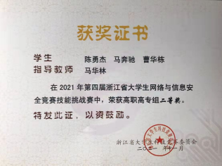 10月30日,第四届浙江省大学生网络与信息安全竞赛落下帷幕,我院喜获佳绩。经过激烈角逐,计算机网络技术专业主任马华林老师指导的四支参赛队伍获得二等奖1项,三等奖3项。其中由陈勇杰、马奔驰、曹华栋等三名学生组成的“楠楠爱吃麻辣烫”战队荣获技能赛二等奖;曾伟、叶婷、朱嘉宇,沈艄涵、宋旭东、邵侃,付劲远、张哲源、单新元等同学组成的另外三支队伍均荣获技能赛三等奖。