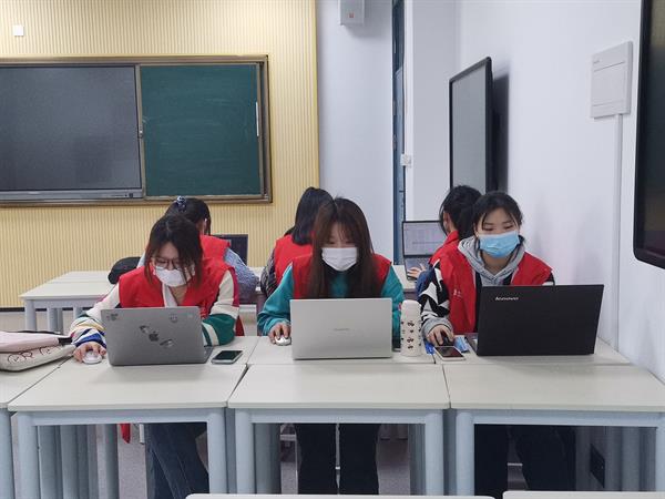 新的答辩模式也给毕业论文答辩工作带来了新挑战。为了做好毕业论文答辩工作,提高效率,专业提前组织开展了“毕业答辩疫情防控志愿者服务活动”。营销协会招收了近50名志愿者,为此次毕业答辩提供前期准备及现场服务工作。