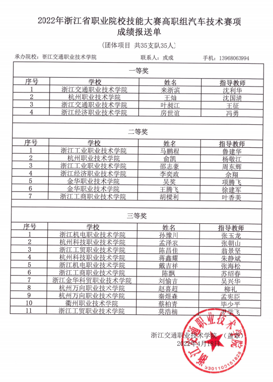 2022年浙江省职业院校技能大赛(高职)“汽车技术”赛项于4月17-18日以线上云比赛形式举办,共有来自全省多所院校共有35支队35人参赛。汽车专业共有两名同学参加比赛,全部获奖,胡樑利同学获得二等奖,陈飘同学获得三等奖。
