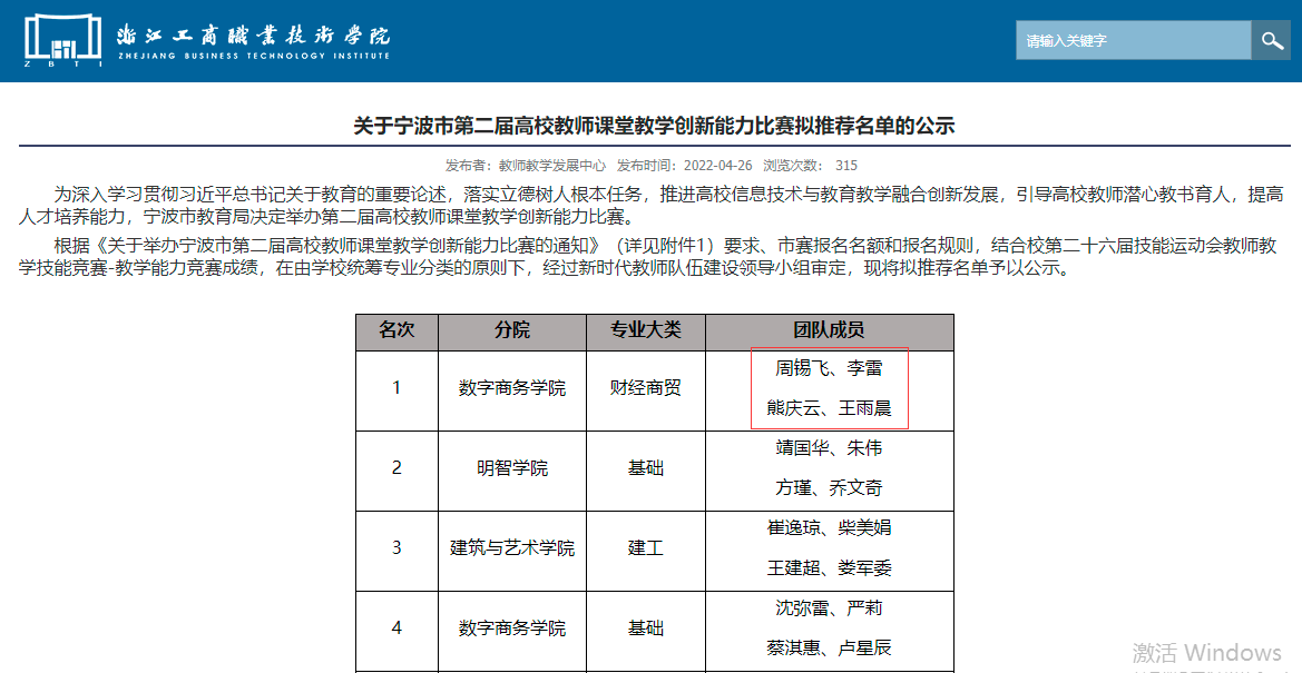 近日,经浙江工商职业技术学院新时代教师队伍建设领导小组推荐,关务与外贸服务专业李雷老师所在团队以排名第一名的身份代表学校参加宁波市第二届高校教师课堂教学创新能力比赛。这次比赛是为深入学习贯彻习近平总书记关于教育的重要论述,落实立德树人根本任务,推进宁波市市高校信息技术与教育教学融合创新发展,引导高校教师潜心教书育人,提高人才培养能力。要求专业课程教学内容应对接新技术、新工艺、新规范,涉及1+X证书制度试点的专业,还应对接有关职业技能等级标准。教材的选用必须遵照《职业院校教材管理办法》等文件规定和要求。鼓励推荐落实劳动教育特色、疫情防控相关的思政、医药卫生类教学内容、1+X证书制度试点有关专业、针对高职扩招生源特点实施教学、中外合作办学项目专业、线上线下混合式教学效果良好的参赛作品。