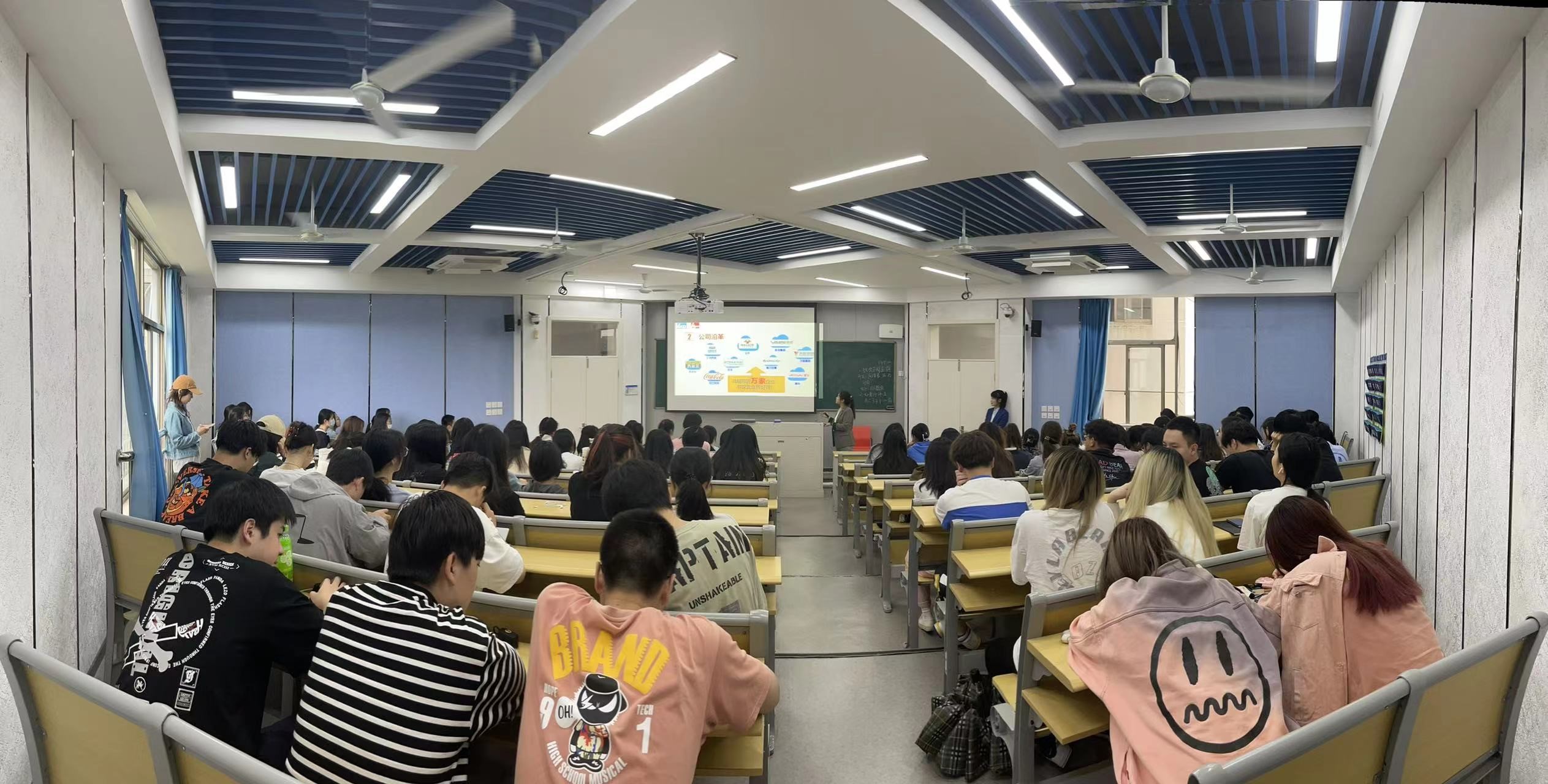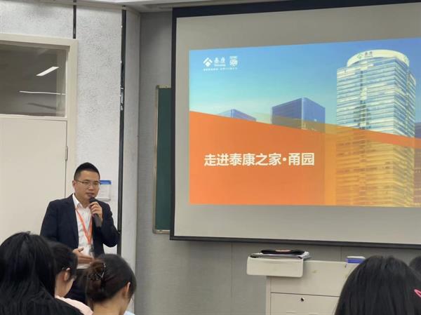 此次会议同时也邀请了泰康保险集团——宁波泰康之家·甬园人力资源部负责人张国军进行宣讲。宣讲通过公司微视频与人员宣讲分别展示了泰康之家甬园的公司内部环境、公司发展现状、各个招聘职位要求待遇,并向同学们发起了企业参观的邀请,让同学们能够更直观地了解泰康之家甬园。
