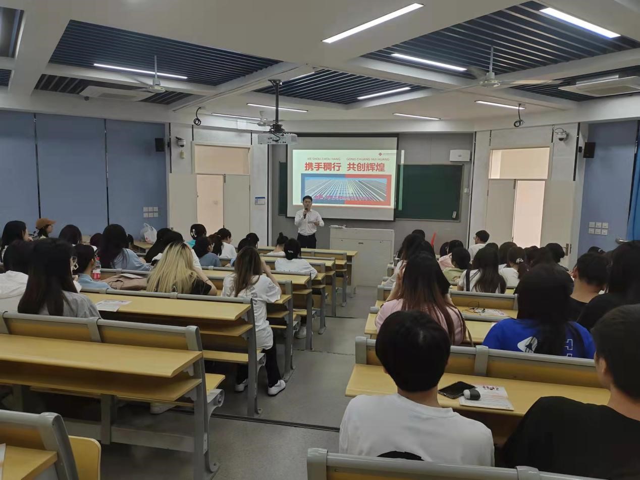 2022年5月27日,首期订单班宣讲活动在思齐楼23A7教室举行,稠州银行宁波分行办公室主任柳俊俭一行三人、经管学院副院长张旺军、金融专业主任朱艳敏、以及金融2021、2022班的班主任和同学们参与了此次宣讲活动。