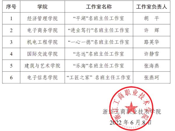 2022年6月8日,2022年校级“名班主任工作室”6个,我专业张燕珂老师“工匠之家”名班主任工作室名列其中。