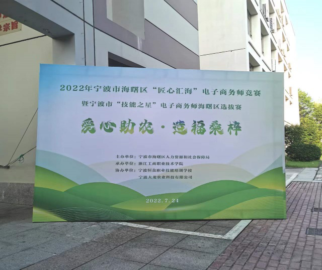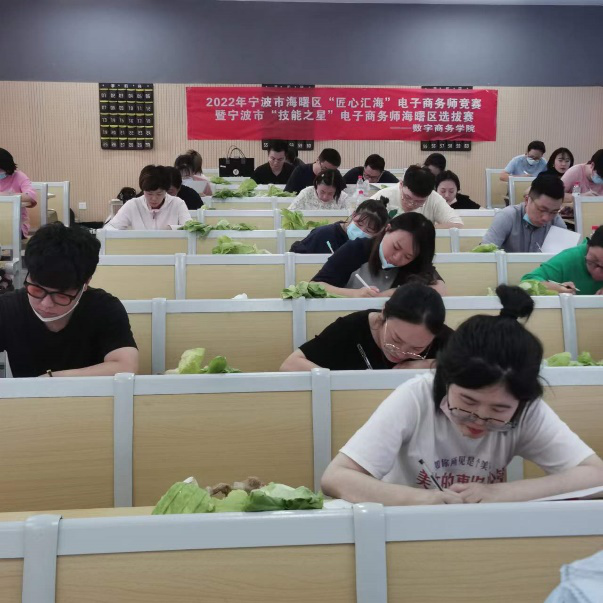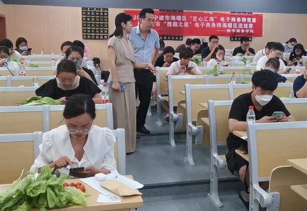 7月24日上午,2022年海曙区“匠心汇海”电子商务师竞赛暨宁波市“技能之星”电子商务师海曙区选拔赛顺利举行。此次竞赛由宁波市海曙区人力资源和社会保障局主办,浙江工商职业技术学院数字商务学院国际经济与贸易专业承办,协办单位包括宁波恒众职业技能培训学校和宁波大龙农业科技有限公司。