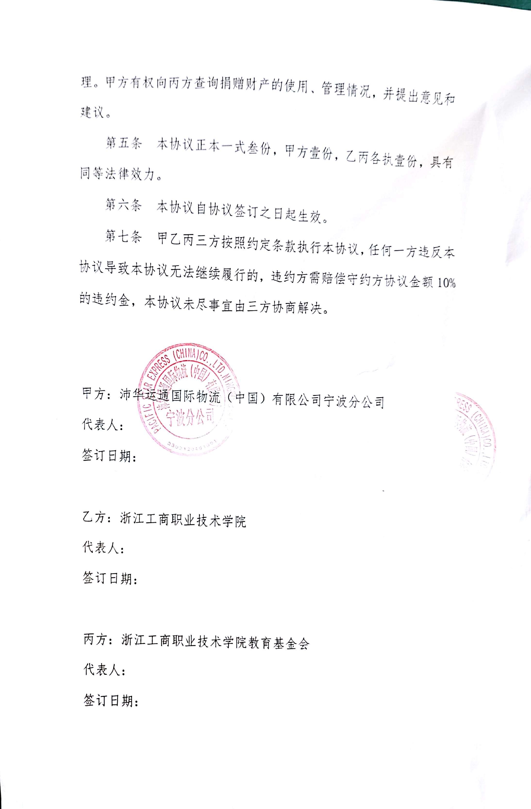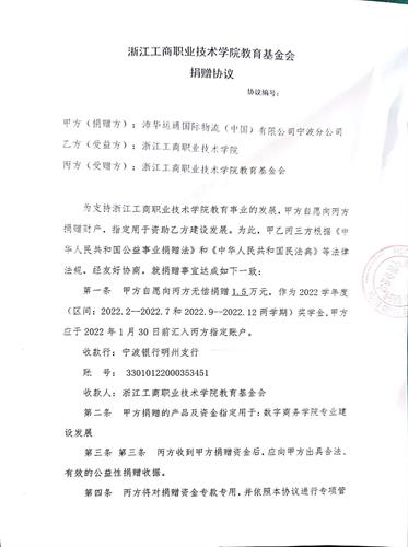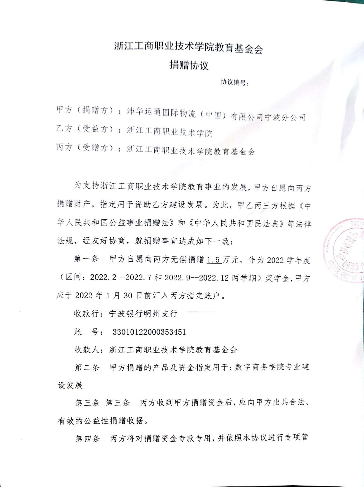 关务与外贸服务专业立足于实践教学,多年深耕校企合作,取得了有效成果。货运行业龙头外资企业沛华运通国际物流(中国)有限公司宁波分公司与学校达成了捐赠专项奖学金事宜,首批奖学金已到达学校指定账户,用于激励有志于从事国际货运行业的优秀人才。这也是目前首家对我校捐赠奖学金的企业,极大地鼓舞了关务专业学生的学习积极性,学生们都对自己未来的职业前景充满了信心。