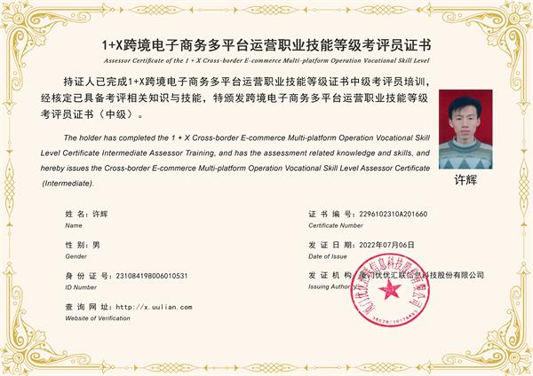 为贯彻落实全国职业教育大会精神及《关于在院校实施“学历证书+若干职业技能等级证书”制度试点方案》(教职成〔2019〕6 号)、《关于推进1+X证书制度试点工作的指导意见》(教职成厅函〔2019〕19号)等文件要求,稳步推进1+X跨境电子商务多平台运营职业技能等级证书试点工作的开展,近日,由厦门优优汇联信息科技股份有限公司举办了1+X跨境电子商务多平台运营职业技能等级证书线上师资培训(中级)。