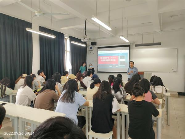 首先,小吉科技售前主管仇庆庆从企业发展历程、研发实力、电商平台、跨界合作和薪资薪酬等方面介绍公司概况,让同学们知悉“双十一”活动各个时间节点,并解答了学生们对此次活动的疑问。