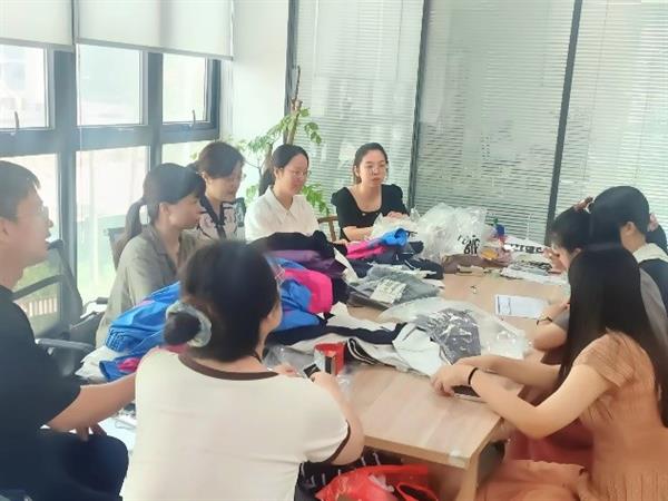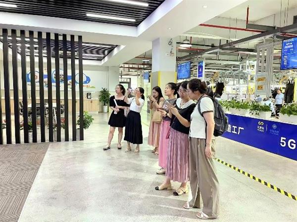 公司出口部周莹经理介绍了公司的发展历程,并带领全体专业教师参观了智能化服装生产车间,在参观的同学给专业教师介绍了衣服的生产包装出口全流程。全体教师都在“服装智能工厂数据协同中心”前驻足观看,数据协同中心对于工厂每一个订单的生产进度都做到了实时监控。最后,周莹经理带领全体教师参观了公司的样品间,老师们深入了解了服装行业的发展趋势、公司出口市场的拓展、公司内销和外贸双循环模式等,特别是在当前国内外诸多不确定因素影响下,公司如何创新跨界,从局限的环境中跳脱出来,全方面开拓新的国际市场和新产品。毕业生刘忆雯同学也简单介绍了自己的发展情况,结合自己岗位实习的体验谈了对专业课程改革的建议。
