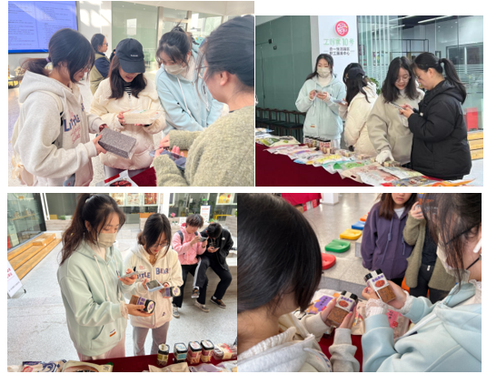 最后同学们根据展销会活动的分组分工情况,分别进行展位商品的线上线下选品、新媒体推广的拍照、视频、软文、品牌故事等素材创作的真题真做活动。