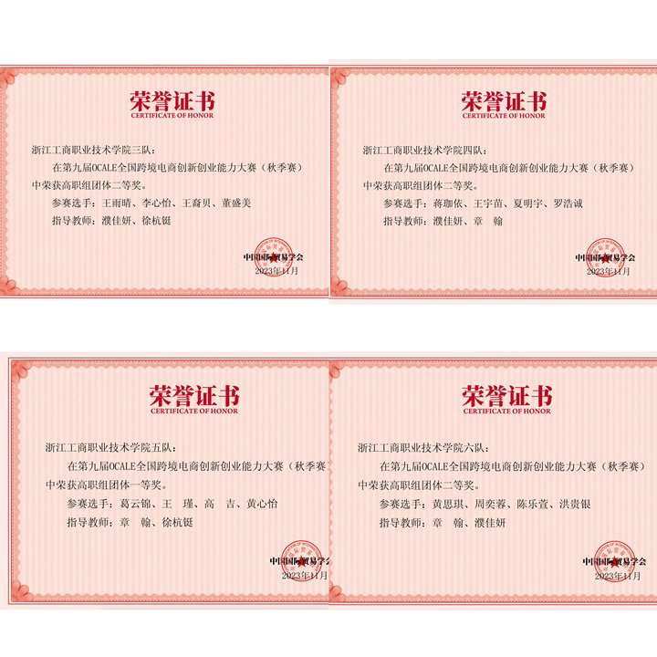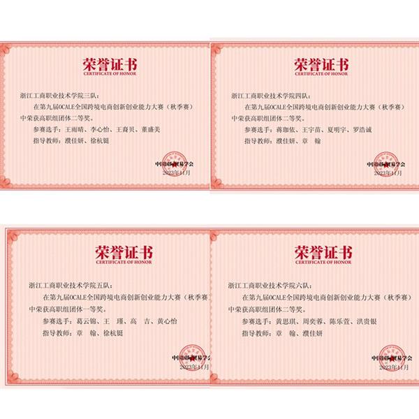 在2023年11月22日至24日举行的第九届OCALE全国跨境电商创新创业能力大赛秋季赛中,国际商务(中外合作办学)专业展现了其卓越的竞争实力。由国际商务(中外合作办学)专业的教师章翰、濮佳妍和徐杭铤带领的四支队伍,在为期三天、共12轮的激烈博弈中,荣获一个一等奖和三个二等奖的骄人成绩。