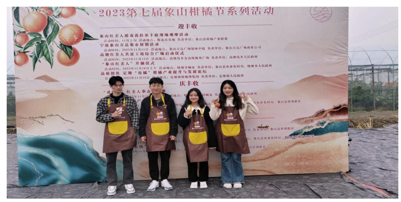 品牌赋能开摘节,产教融合奔共富。近日宁波市品牌建设与创新升级研究基地受邀于象山县晓塘乡“晓橘嫂”共富工坊,参与第七届“象山红美人”开摘节。电子商务专业电商2223班黄馨宇、杨柳、边旭威和陈何凯四位学生参与了其中的直播带货活动,助力“晓橘嫂”携手奔共富。