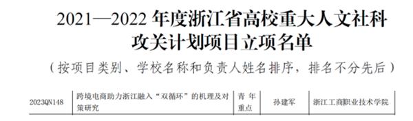 日前,浙江省教育厅办公室发文公布了2021—2022年度浙江省高校重大人文社科攻关计划项目,跨境电商专业喜获立项青年重点项目课题。