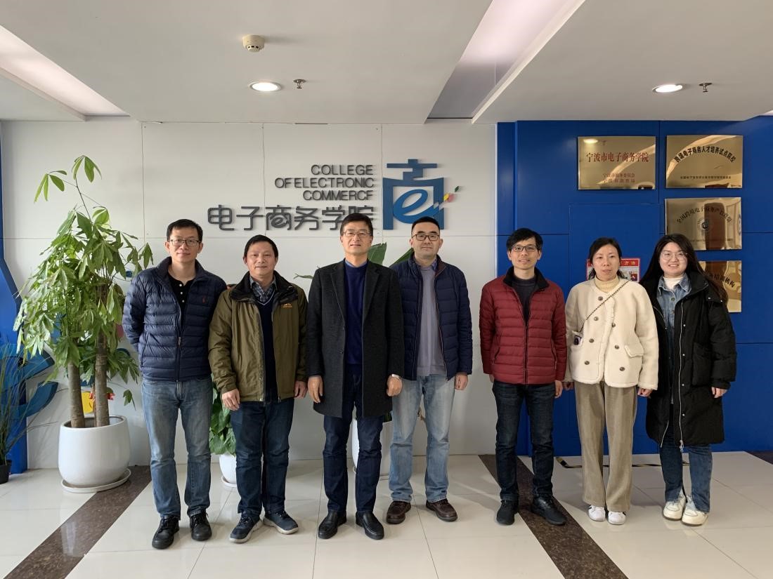 近日,浙江国际海运职业技术学院港口管理学院院长王贵斌一行四人来我校交流跨境电商专业建设情况,数字商务学院书记沈弥雷,副院长田祖佑,跨境电商专业孙建军参加会面交流。