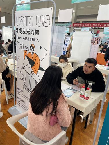 我电子商务专业的毕业生主要询问了线上运维,淘宝运营、平台直播等相关岗位的信息,值得注意的是,有几家企业的带队老总是我校的毕业生,他们在自己的工作领域拼搏奋斗多年后,事业有成,现在主动反哺我校,积极报名来招聘新职员,护航学弟学妹们进入人生的新阶段。