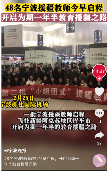 2月25日,国际经济与贸易专业老师胡越明从宁波栎社国际机场启程,跟随50名援疆老师大部队,奔赴新疆阿克苏地区,开启为期一年半的援疆支教工作。胡越明老师已从教18年,主要负责《外贸单证实务》课程,并多次指导学生竞赛获奖。此次援疆,胡老师将任职于阿克苏地区库车中等职业技术学校,为该校学生带去丰富的商贸类知识,帮助学生在学习和生活上更上一层楼。祝愿胡老师在新的工作岗位上开拓创新,一切顺利。