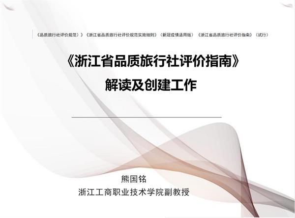 近期,受宁波市文化广电旅游局的邀请,我校旅游管理专业副教授熊国铭在宁波开元名庭酒店,为来自各区县(市)文旅体局及含园区旅游管理部门的市场科负责人、全市品质旅行社及新申报参评品质旅行社的负责人或质监部负责人、市级品质品质旅行社检查员做了《品质旅行社评价规范》标准、实施细则及评价指南的培训,并对品质旅行社的创建工作进行了指导,受到各方好评。