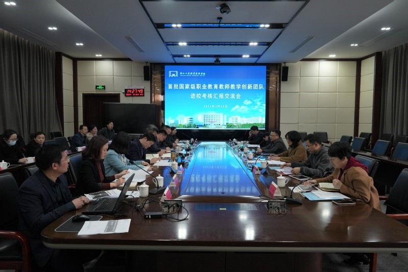 在汇报交流会上,周志春校长介绍了学校发展、专业群建设、师资队伍建设、团队建设及人才培养等情况,团队负责人韦存存从团队三年多来的建设情况、协作共同体建设、建设成果和建设特色创新等方面进行了详细汇报。
