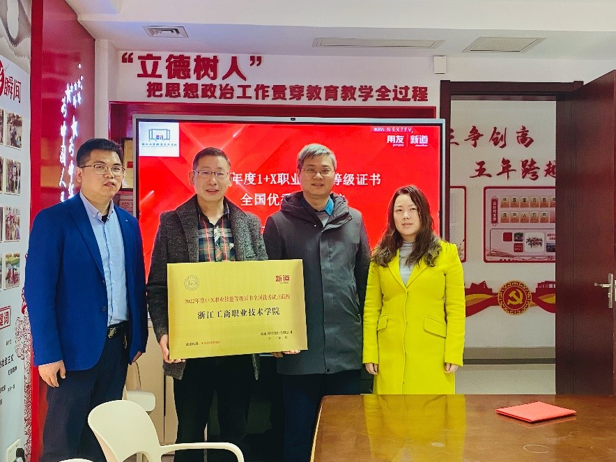202338日,新道科技股份有限公司派专员前来经济管理学院,特授予大数据与会计、大数据与会计(中外合作)专业“1+X业财一体信息化应用技能等级证书全国优秀试点院校称号。