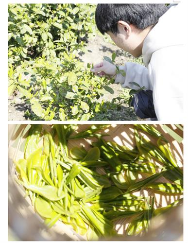 明前茶是指清明节前采制的茶叶,受虫害侵扰少,芽叶细嫩,色翠香幽,味醇形美,是茶中佳品。同时,由于清明前气温普遍较低发芽数量有限,生长速度较慢,能达到采摘标准的产量很少,所以又有“明前茶,贵如金”之说。此次实践活动同学们采集的正是明前茶叶。