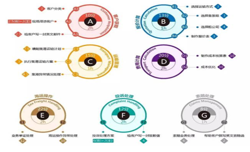 “货运代理”赛项的考核模块设计涵盖了货运代理行业的核心技能要求,是货运代理项目的一次全面竞技。比赛共设计7个比赛模块。具体内容如下: