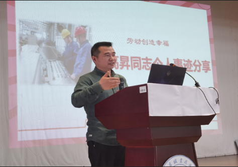 2023年5月10日下午,我校数字商务学院,立足专业《公共关系》课堂,邀请了“全国五一劳动奖章”获得者 全国优秀农民工、浙江省劳动模范、浙江省十四届人大代表、宁波长振铜业有限公司电气工程师、高级技师罗高昇在我校博学楼报告厅开展“做新时代优秀产业工人:劳动创造幸福”主题讲座。